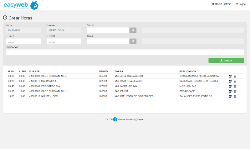 Es una aplicación muy sencilla donde cada usuario registrara que tareas realiza, para que cliente y en que horario del día.