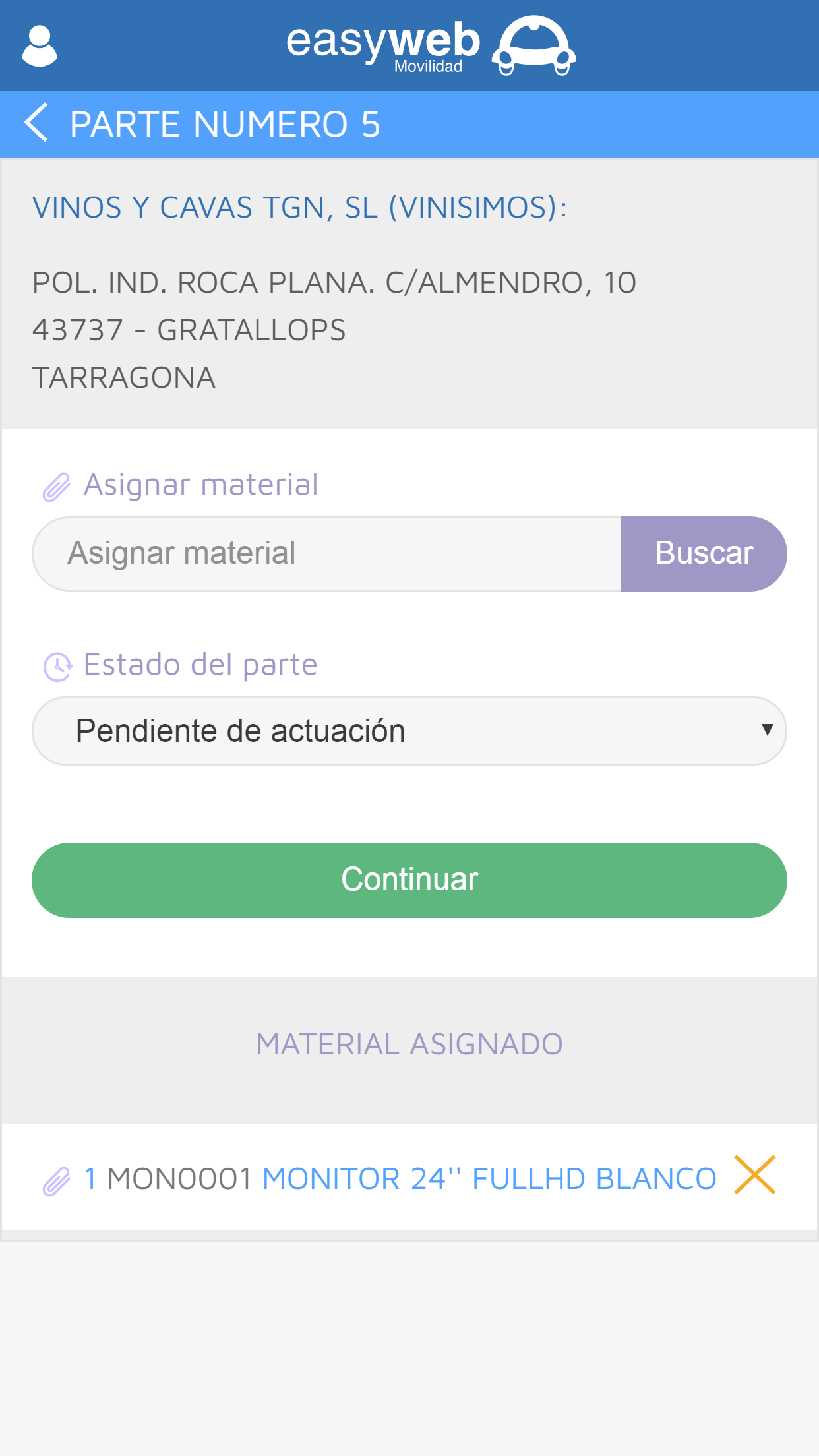 - Imputación de material asignado y pequeño utillaje