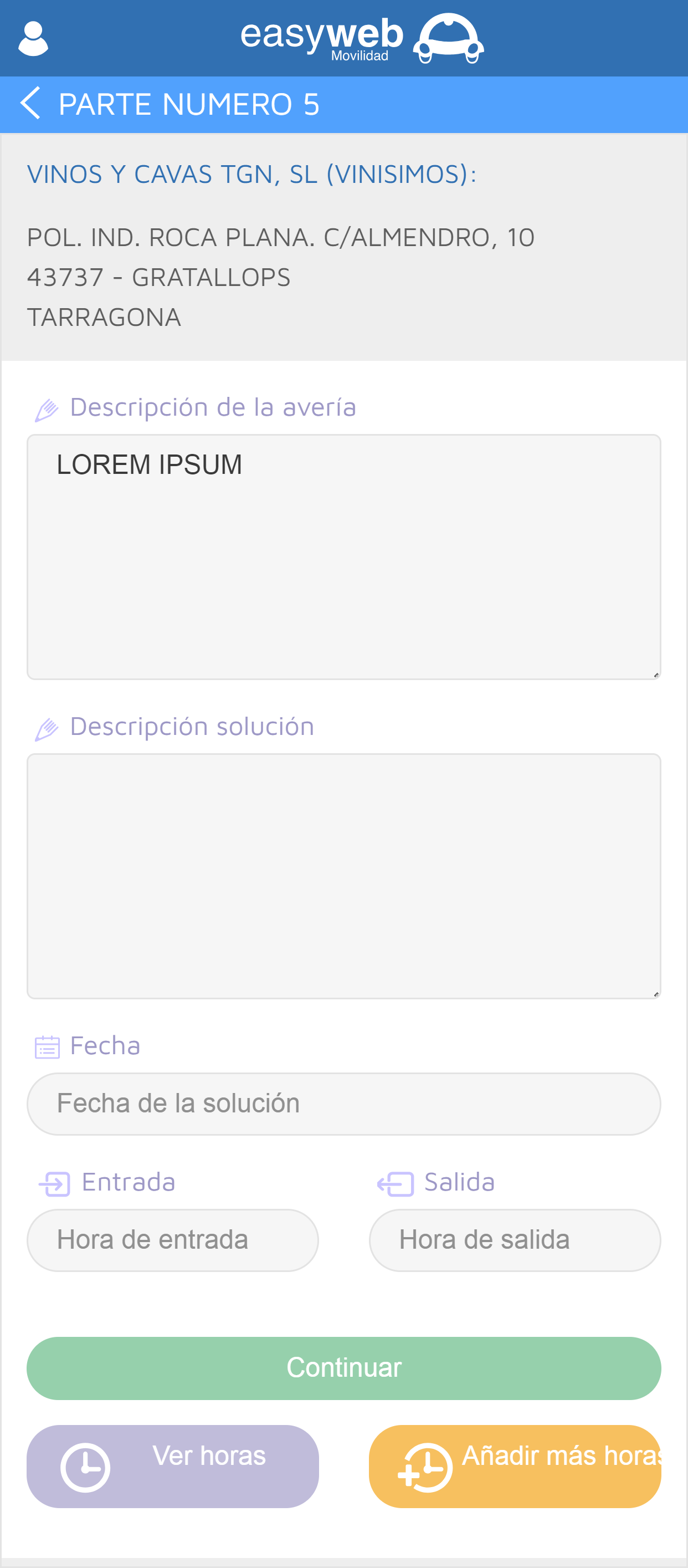- Entrada de múltiples horas y materiales