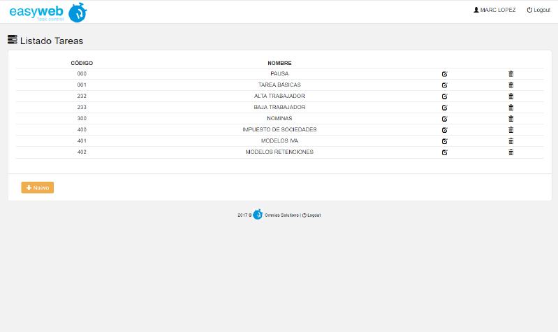 Easyweb Task Control es una herramienta para el control de tareas y tiempo de empleados y colaboradores de la empresa