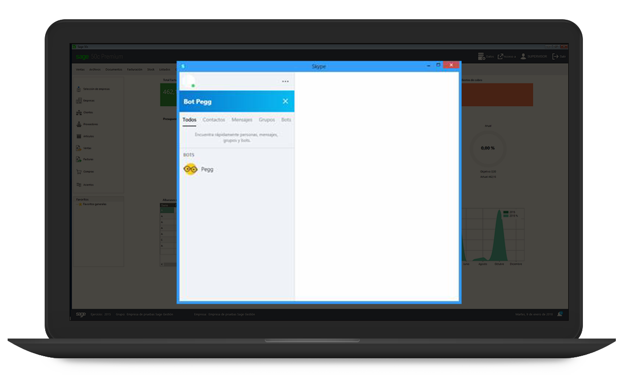 Gracias al asistente digital inteligente, Pegg, podrás consultar los datos de la empresa mediante la conexión de Sage 50 con el Addon Sage Contacts.
